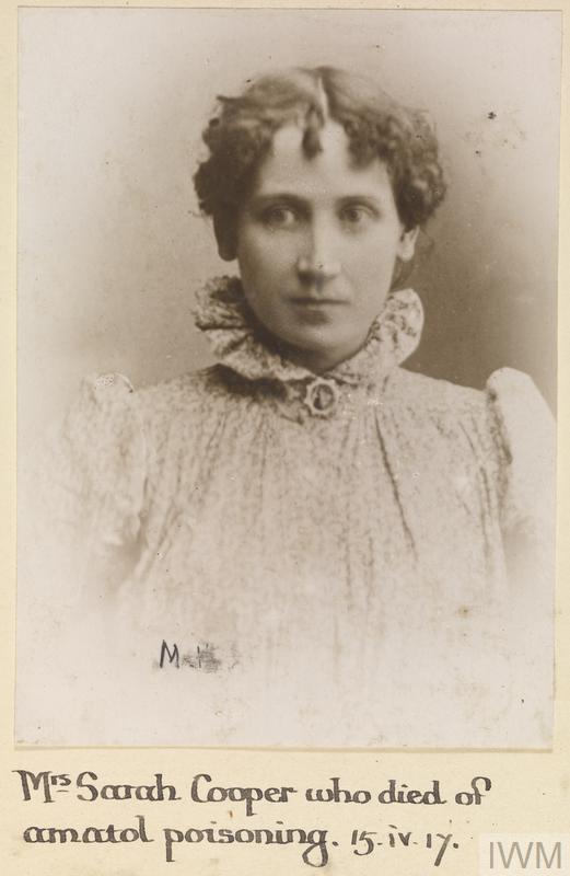 Mrs Sarah Cooper, Munitions work. Died of amatol poisoning 15 April 1917.