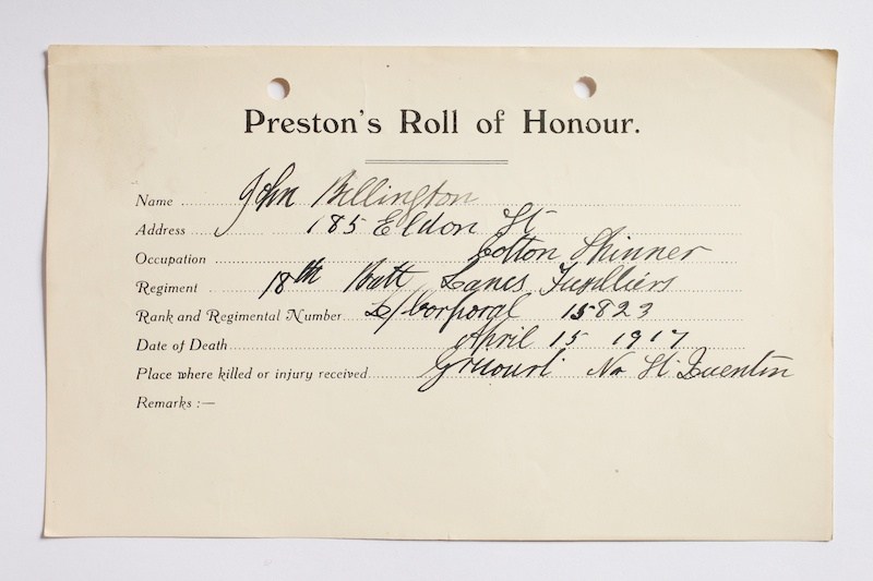 Lance Corporal Jonathan Billington 15823, Lancashire Fusiliers