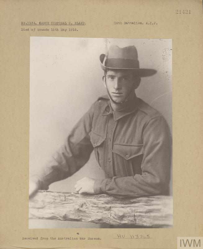 Lance Corporal George Bland 1134. Unit: 16th Battalion, Australian Imperial Force. Death: 15 May 1915 Of wounds in Dardanelles