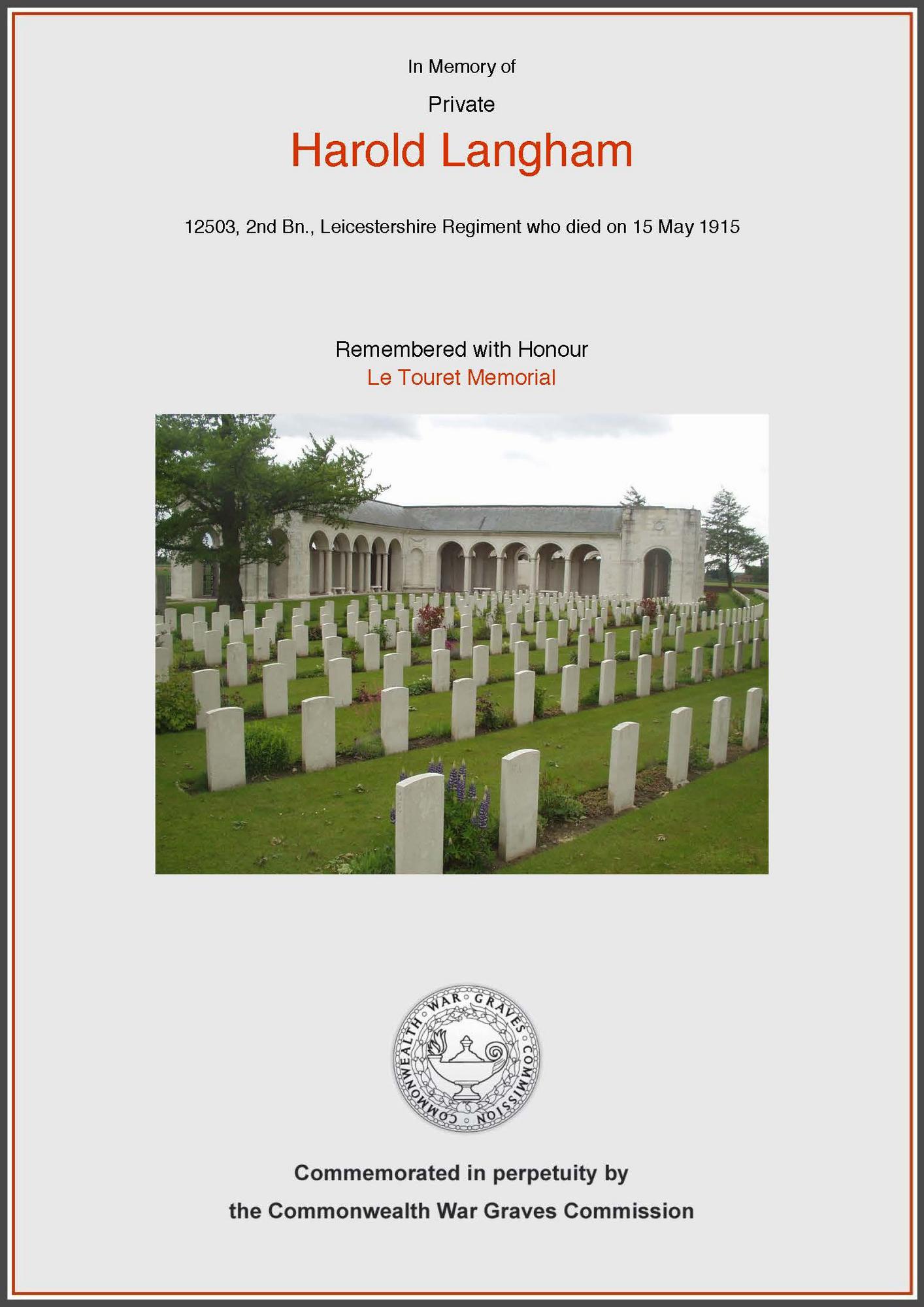 Lieutenant Cornwallis John Warner. Unit: 3rd Battalion, attached to 2nd Battalion, Oxfordshire & Buckinghamshire Light Infantry. Death: 15 May 1915 Missing in Action after reaching the top of a trench held by the Prussian Infantry Western Front