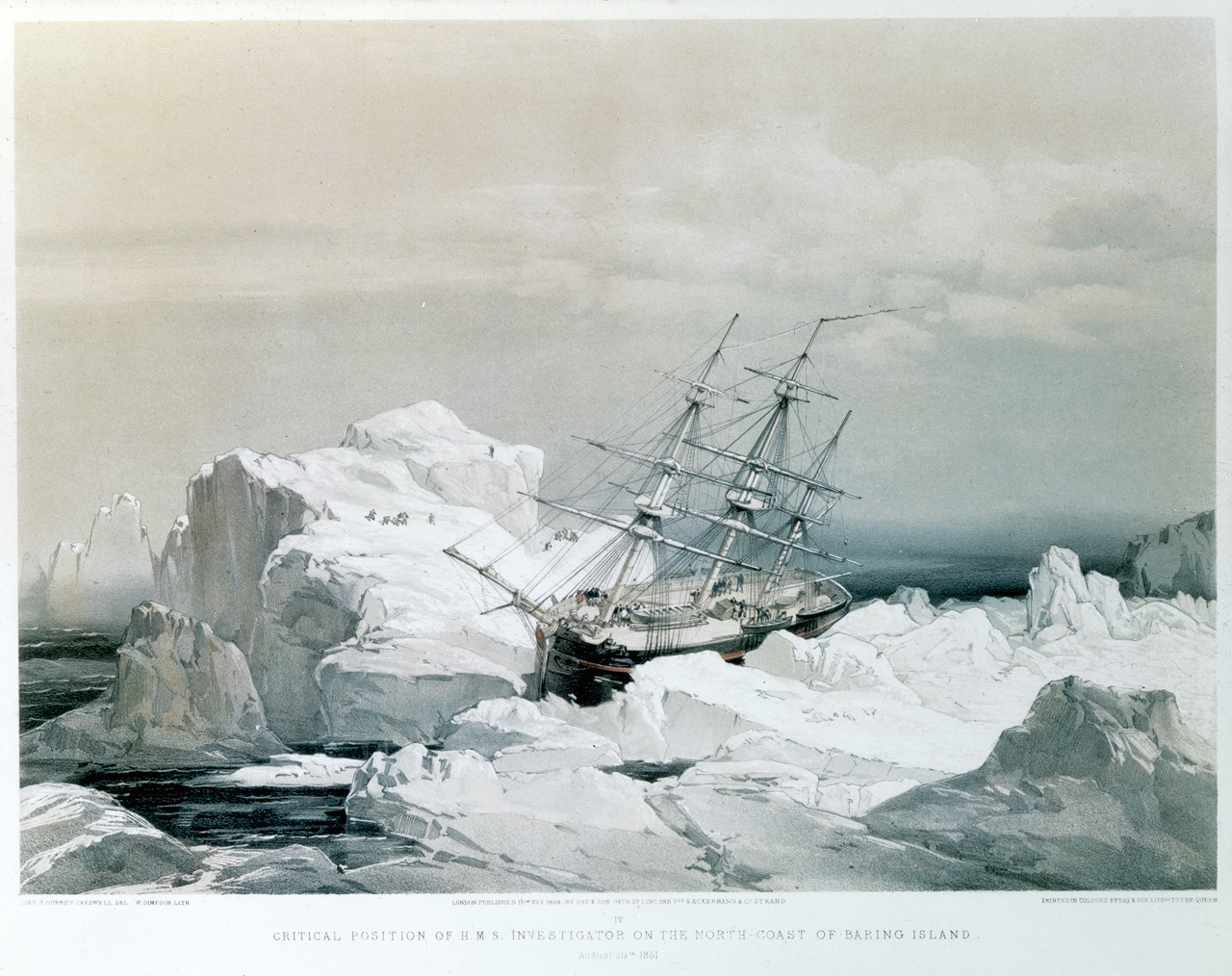 Critical position of HMS Investigator on the North coast of Baring Island, August 20th 1851. Plate IV.