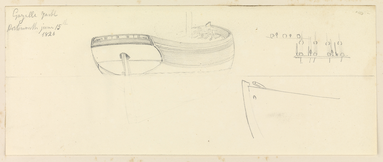 Drawing inscribed in the upper left 'Gazelle Yacht/Portsmouth june 15th/1826.'