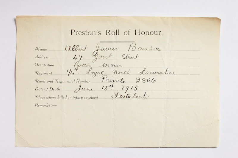 Private Albert J Bamber 2806, Loyal North Lancashire Regiment