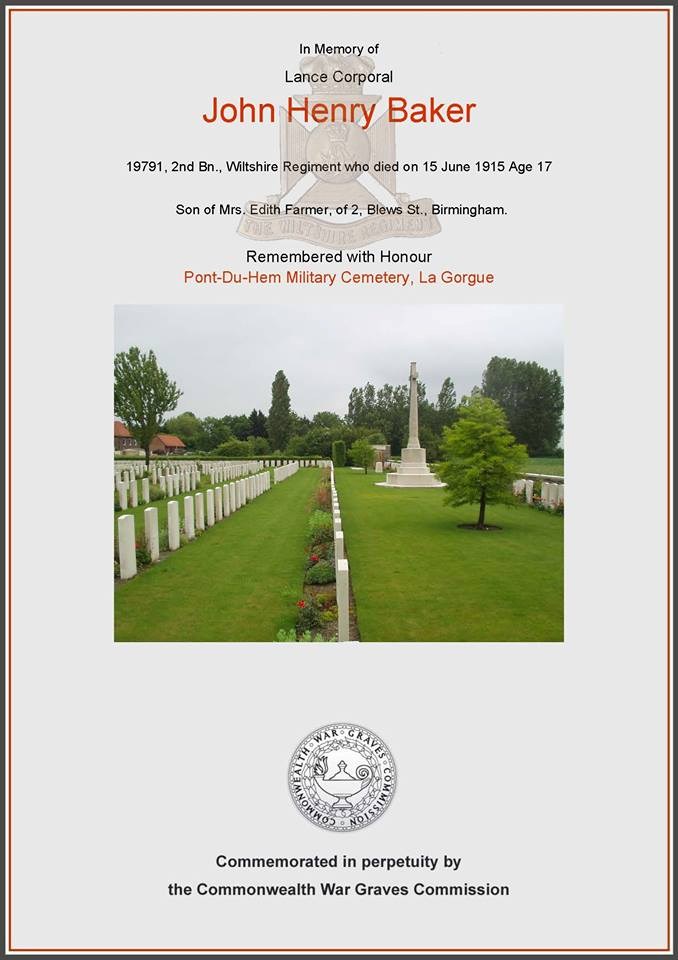 Lance Corporal John Henry Baker 19791, Duke of Edinburgh's (Wiltshire Regiment)