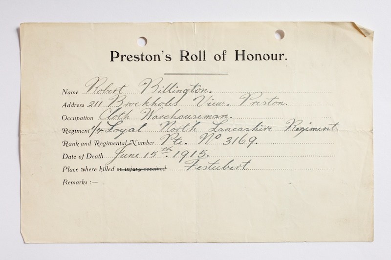 Private Robert Billington 3169, The Loyal North Lancashire Regiment