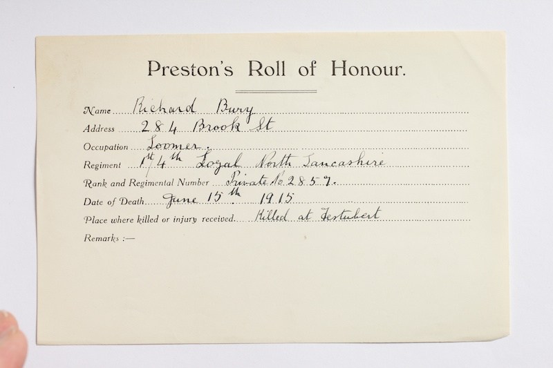 Private Richard Bury 2857, The Loyal North Lancashire Regiment