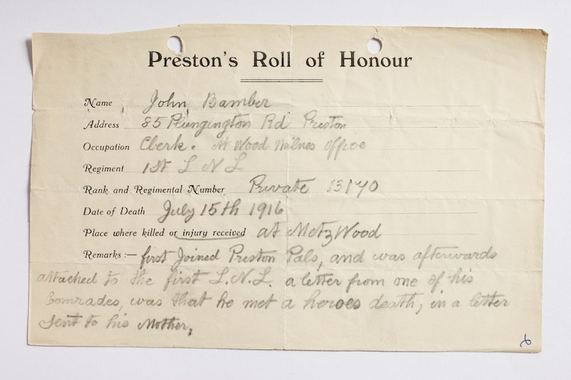 Private John Bamber 13170, The Loyal North Lancashire Regiment