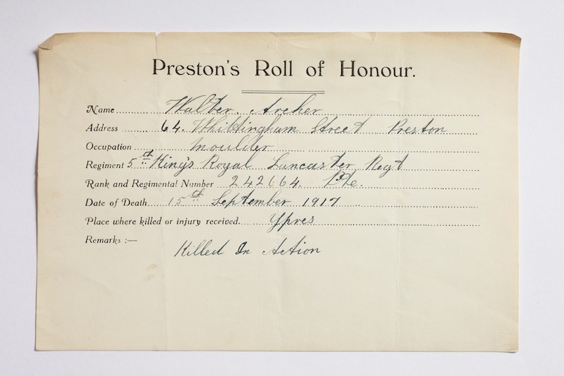 Private Walter Archer 242664, Kings Own Royal Lancaster Regiment