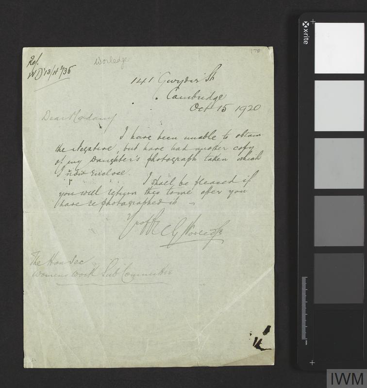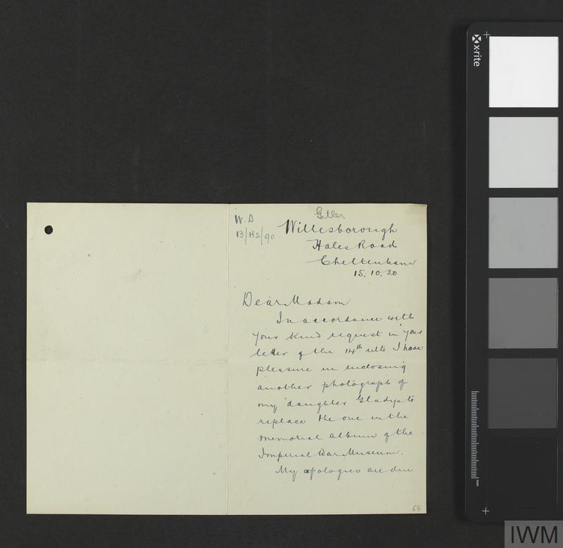 Nurse Mabel E Chadwick, Queen Alexandra's Imperial Military Nursing Service Reserve. Died of enteric fever contracted on duty in Egypt 15 October 1915.