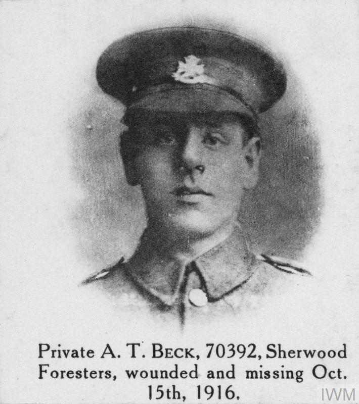 Private Alfred Thomas Beck 70392. Unit: 2nd Battalion, Sherwood Foresters (Notts and Derby Regiment). Death: 15 October 1915 Western Front