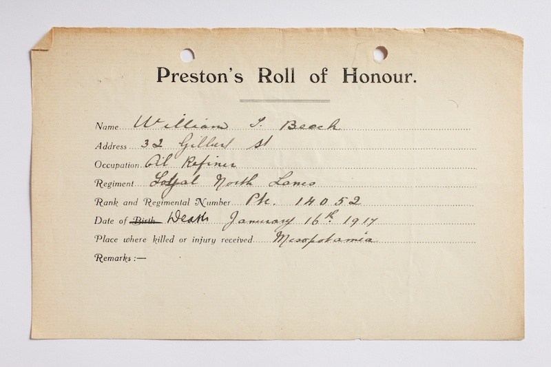 Private William Tillotson Beech 14052, Loyal North Lancashire Regiment