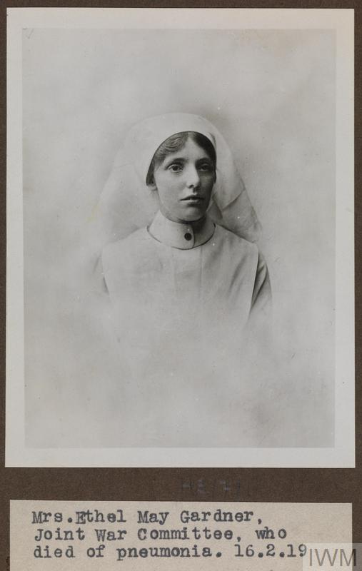Mrs Ethel May Gardner, Joint War Committee. Died of pneumonia 16 February 1919.