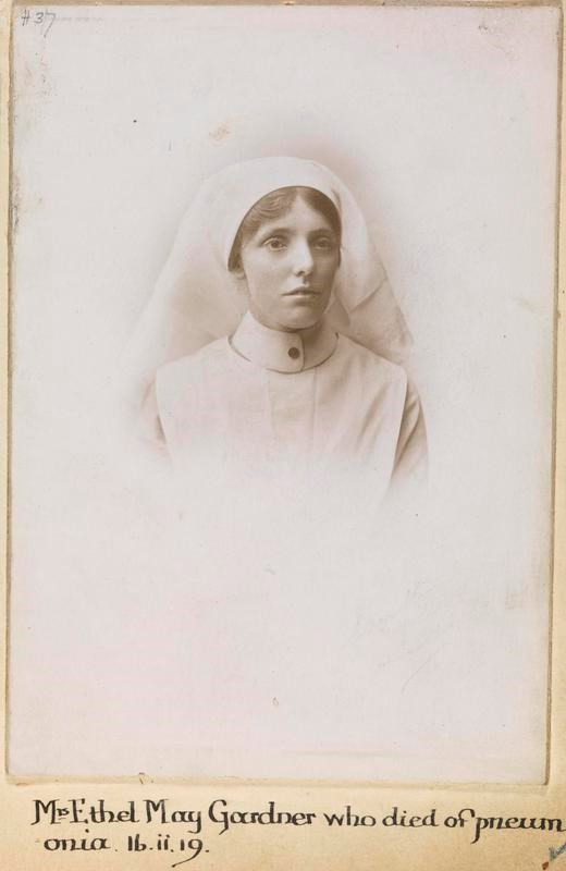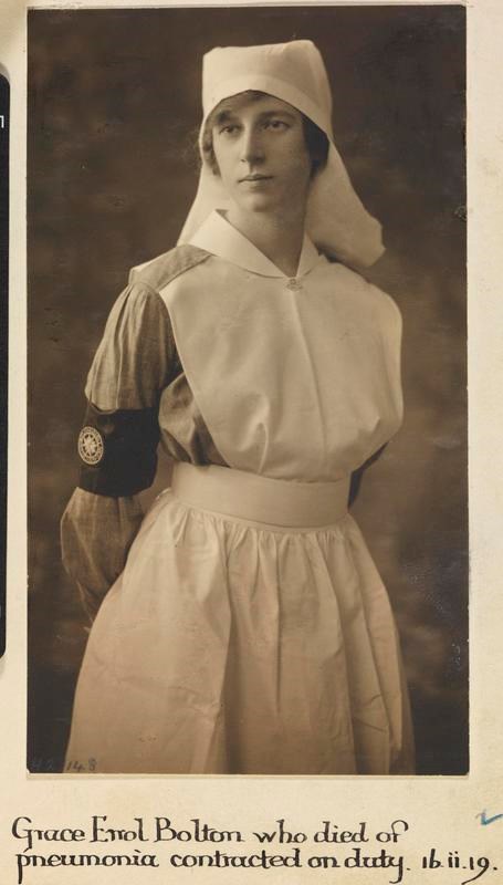 Nurse Grace Errol Bolton, Voluntary Aid Detachments. Died of pneumonia contracted on duty 16 February 1919.