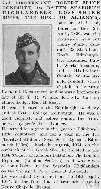 Second Lieutenant Harold F Marion-Crawford. Unit: Special Reserve, attached 2nd Battalion, Irish Guards. Death: 16 April 1915 Western Front