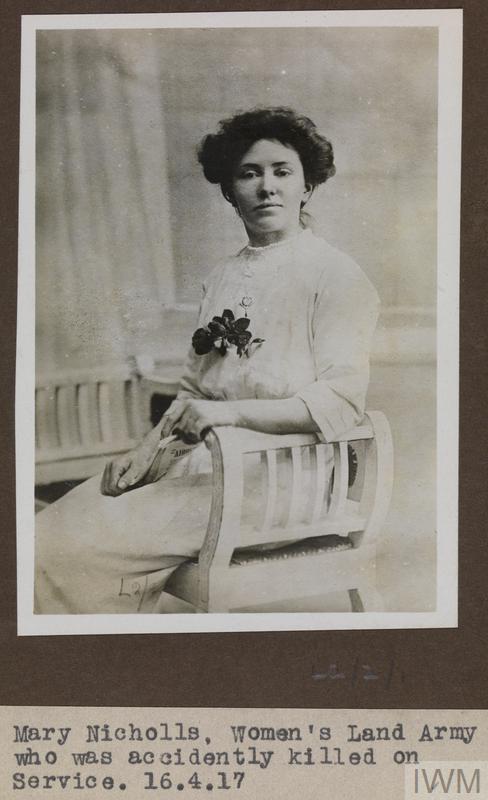 Mary Nicholls, Women's Land Army. Accidentally killed on duty 16 April 1917.