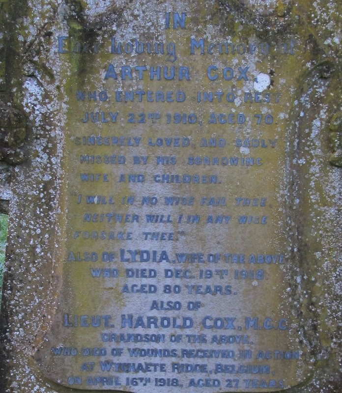 Second Lieutenant Harold Cox , Attached Machine Gun Corps