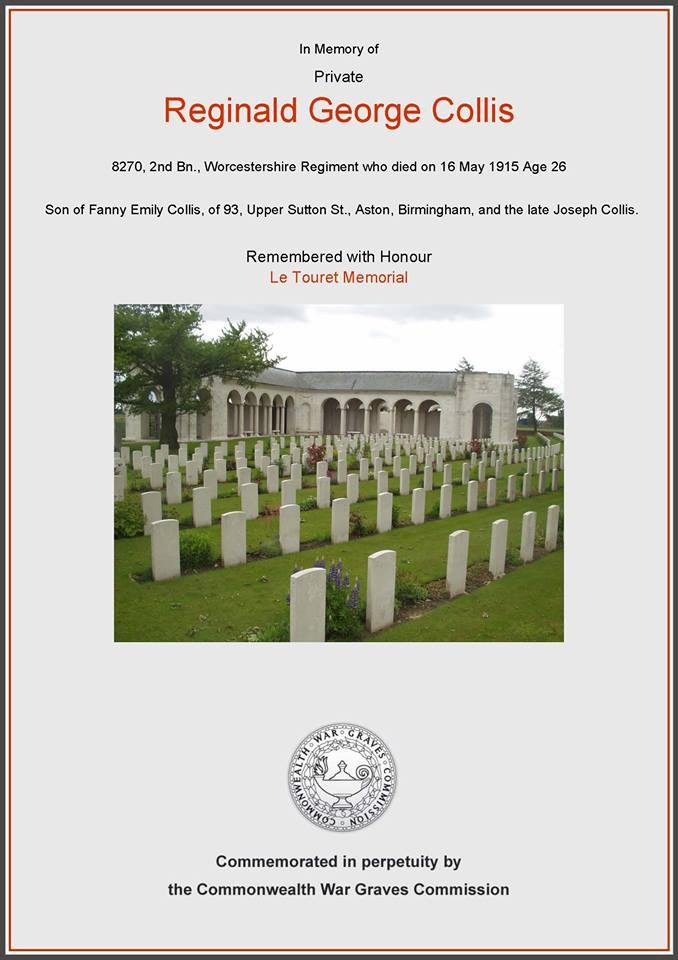 Private Reginald George Collis 8270, Worcestershire Regiment