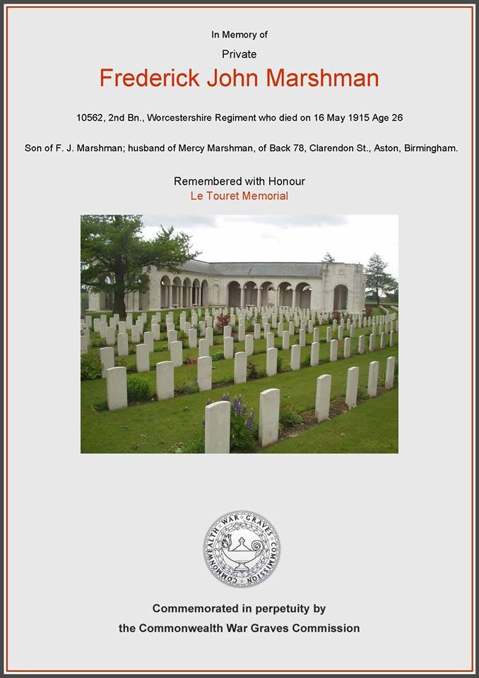 Private Frederick John Marshman 10562, Worcestershire Regiment