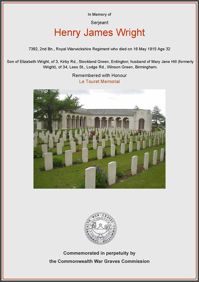 Serjeant Henry James Wright 7392, Royal Warwickshire Regiment