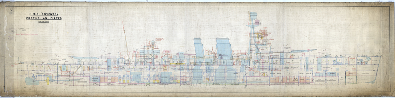 Kinsale (1741). Scale: 1:48.  Plan showing the body plan, sheer lines with inboard detail, and longitudinal half-breadth for Kinsale (1741), a 1733 Establishment, 44-gun Fifth Rate, two-decker.  The annotation relating to the plan being returned and the C