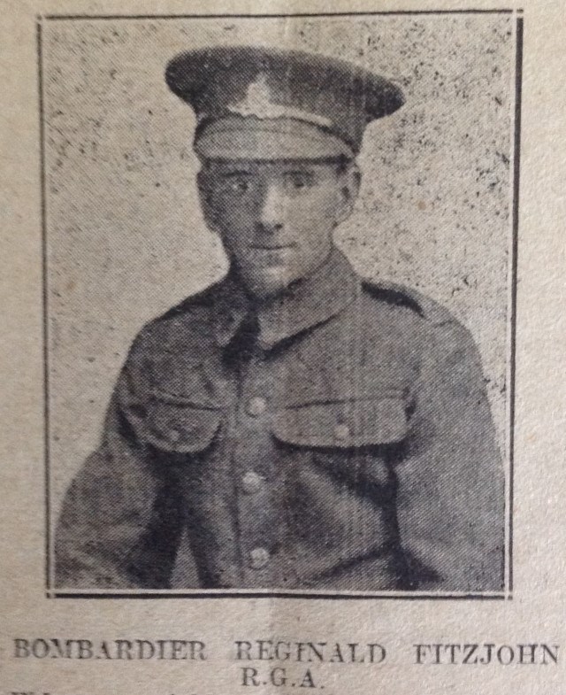 Bombardier Reginald John Fitzjohn L/28849, Royal Field Artillery