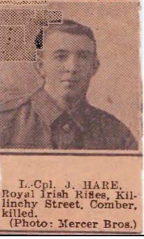 Lance Corporal David William Barnett Flack 939. Unit: 13th Battalion, Royal Irish Rifles. Death: 16 August 1917, Ypres, Western Front.