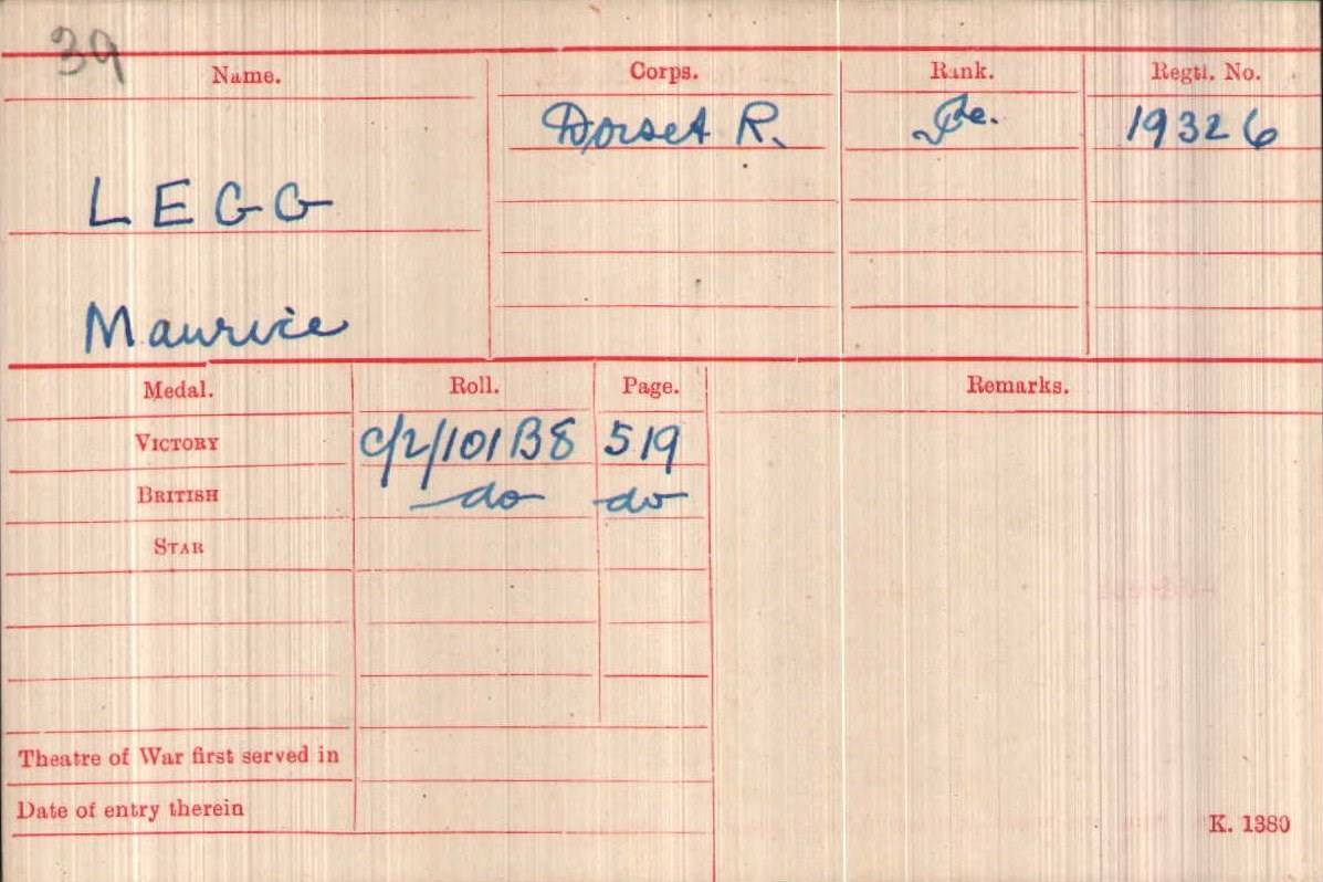 Private Maurice Joseph Hyde Legg 19326, Dorsetshire Regiment