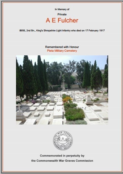 Private Alfred E Fulcher 8956, Shropshire Light Infantry
