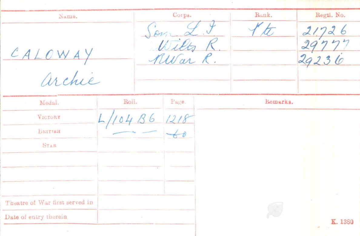 Private Archibald Thomas Callaway 29236, Royal Warwickshire Regiment