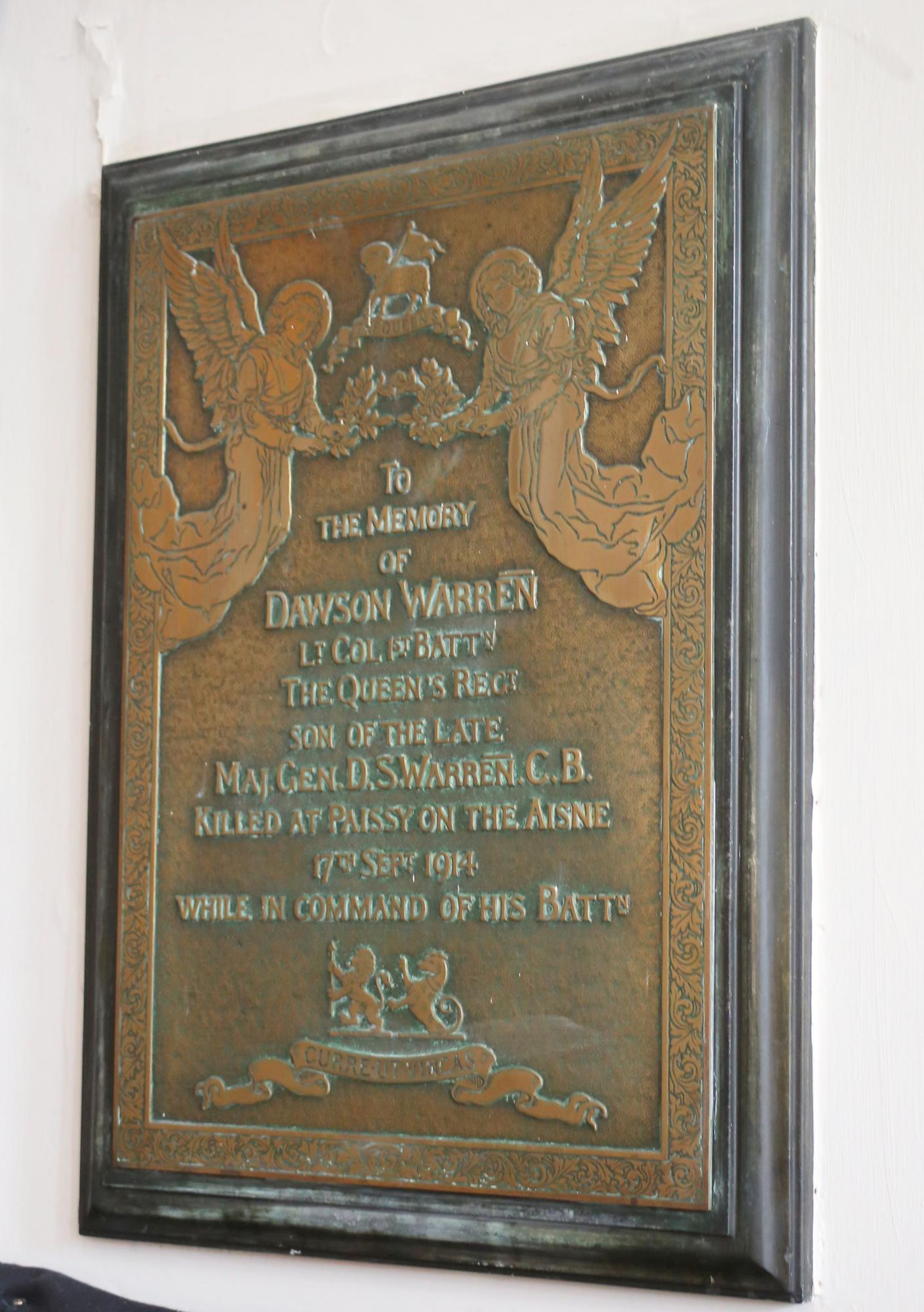 Lieutenant Colonel Dawson Warren. Unit: Commanding Officer, 1st Battalion, The Queens (Royal West Surrey Regiment). Death: 17 September 1914 Killed in Action Western Front