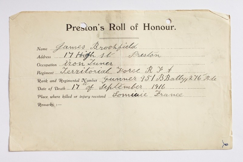 Gunner James Brookfield 951, Royal Field Artillery