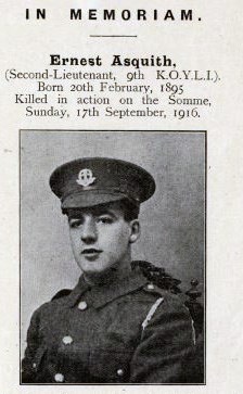 Second Lieutenant Ernest Asquith , East Yorkshire Regiment