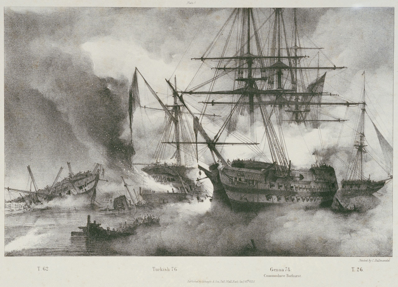Breslaw and the Azoff at the Battle of Navarino, 20 Oct 1827. Plate no.7.; One of thirteen plates (plate no.1 missing), others are PAF4810-PAF4814, PAF4816-PAF4821.