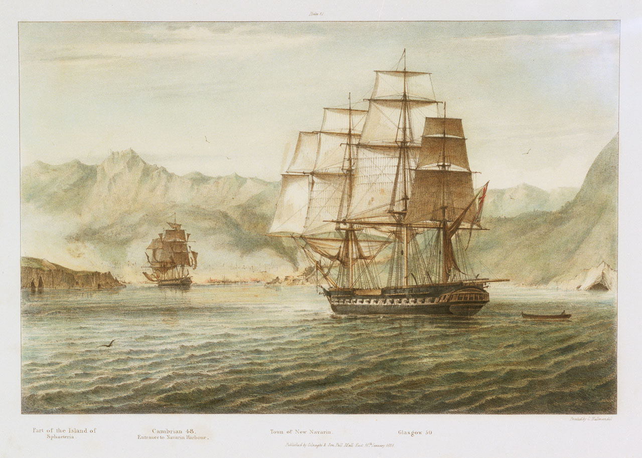 Glasgow and Cambrian at the Battle of Navarino, 20 Oct 1827. Hand-coloured.; Plate no.11.