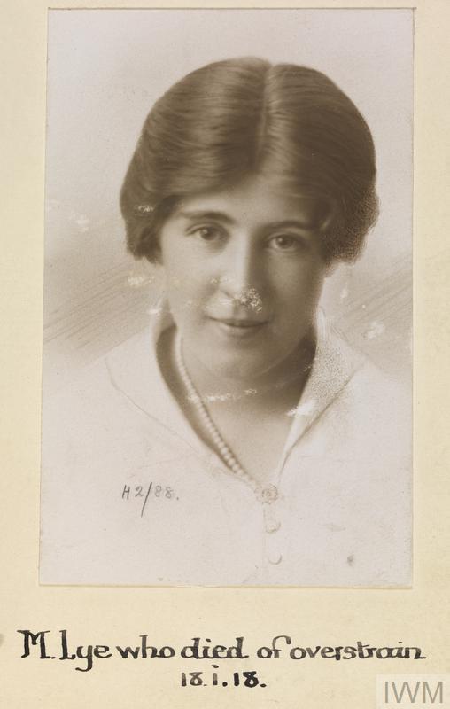 Miss Marjorie Lye, Voluntary Aid Detachments. Died of overstrain 18 January 1918.