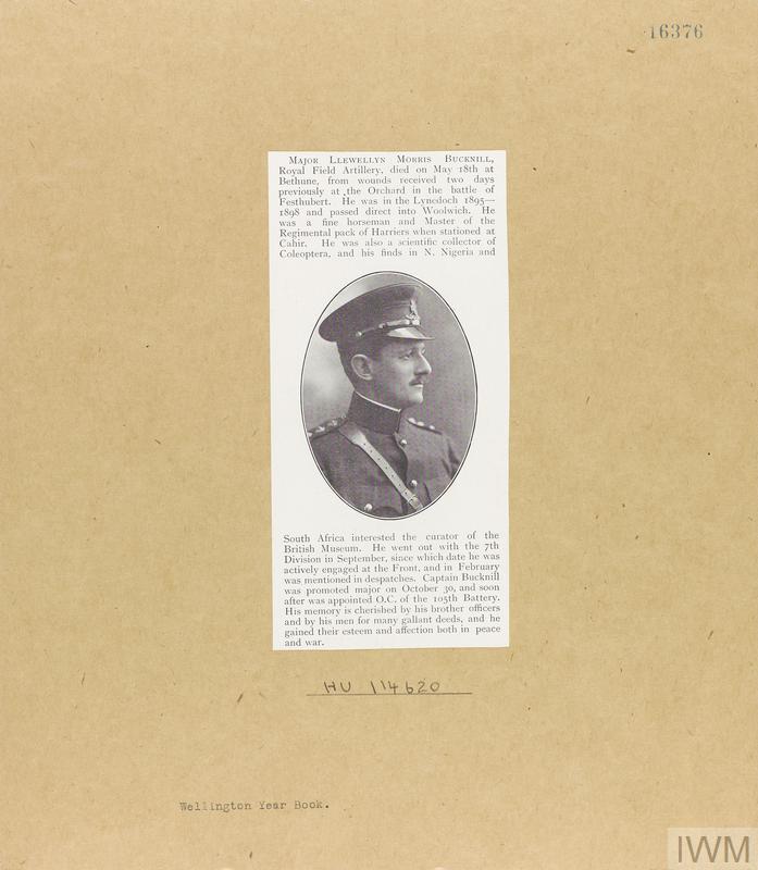 Major Llewellyn Morris Bucknill MID. Unit: 105th Battery, Royal Field Artillery. Death: 18 May 1915 From wounds received 16 May 1915 Fesubert Western Front