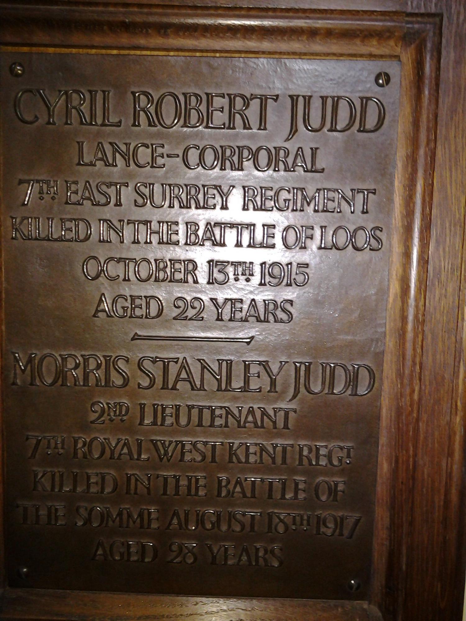 Second Lieutenant Morris S Judd , Royal West Kent Regiment