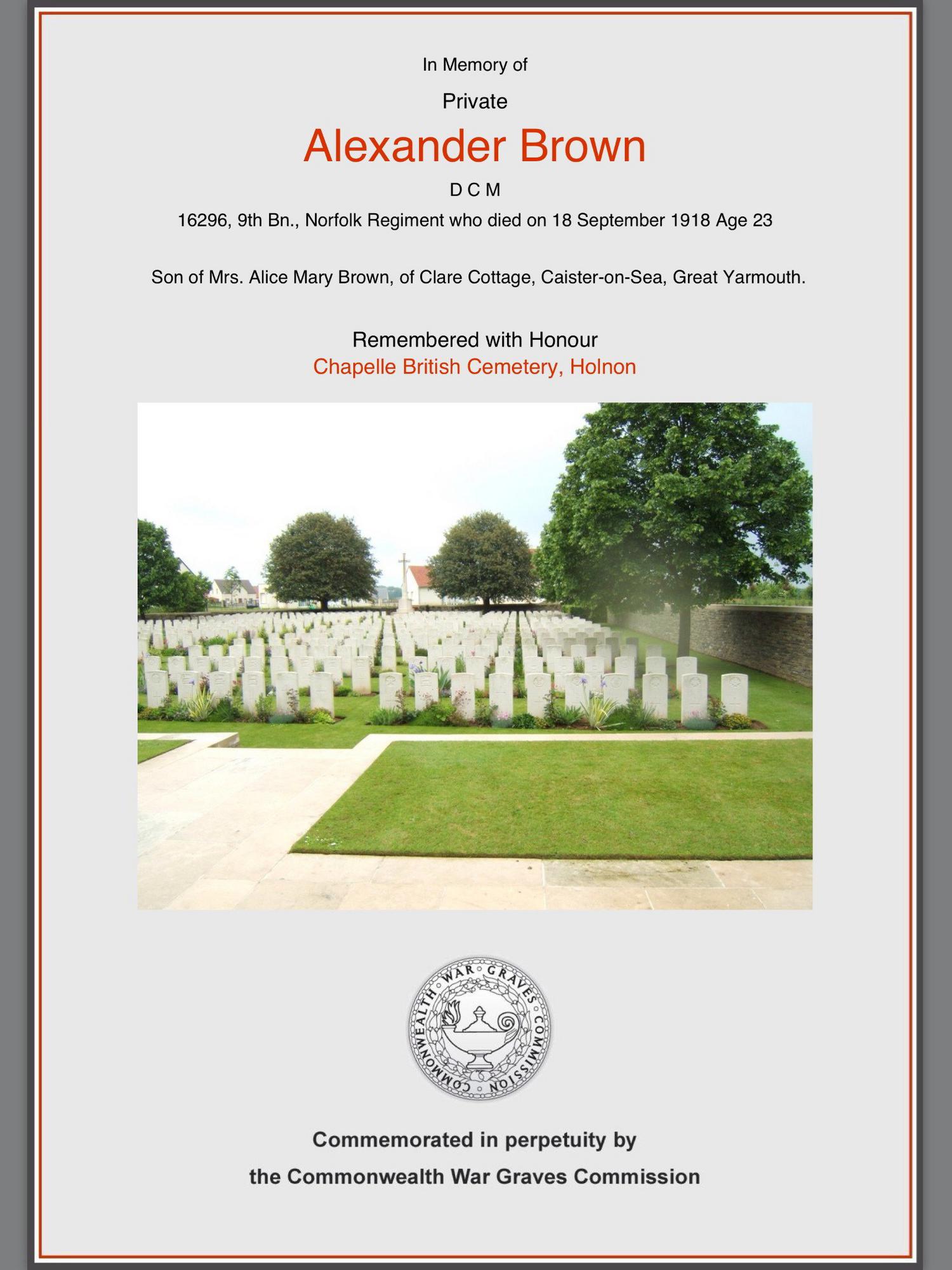 Private Alexander Brown D.C.M. 16296, Norfolk Regiment