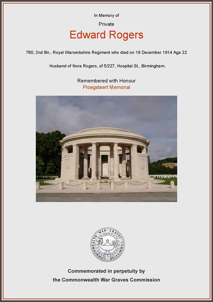 Private Edward Rogers 760, Royal Warwickshire Regiment