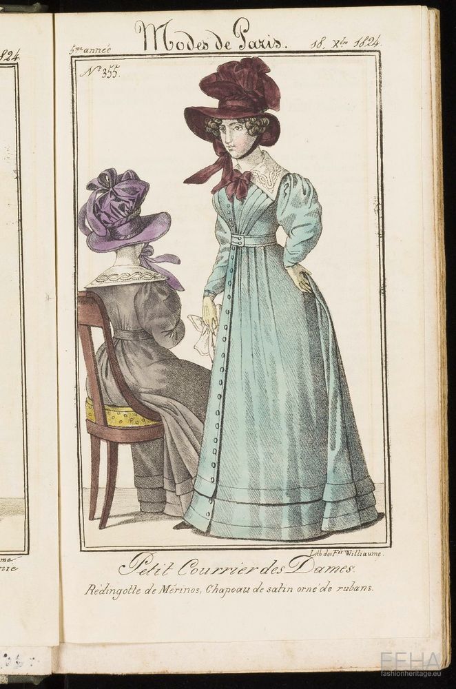Modeprent (in kleur) uit 'Journal des dames et des modes : réuni …' 1824-12-18