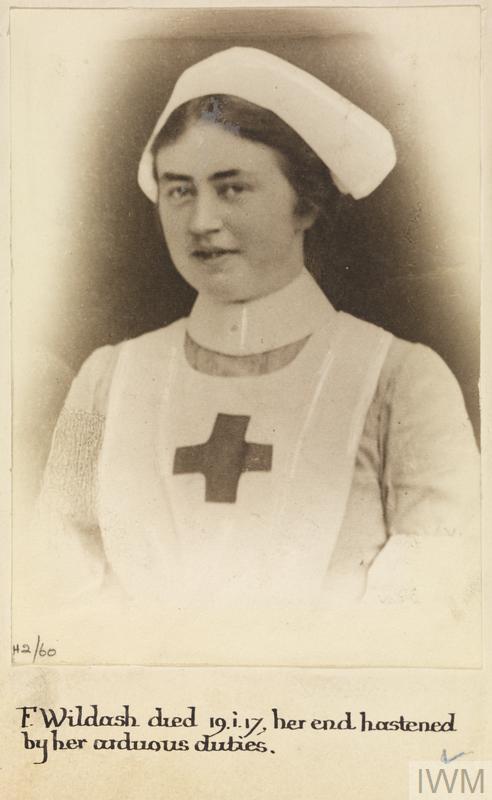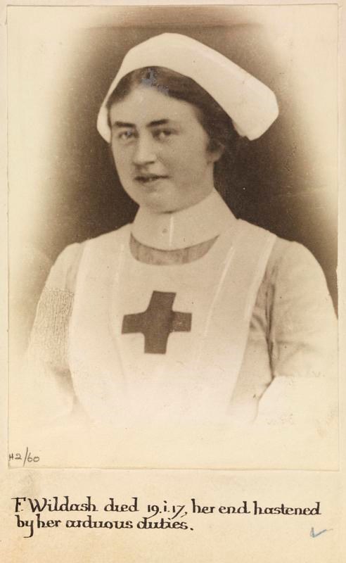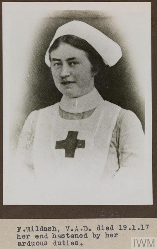 Miss H Frances B Wildash, Voluntary Aid Detachments. Died from the results of her arduous duties 19 January 1917.