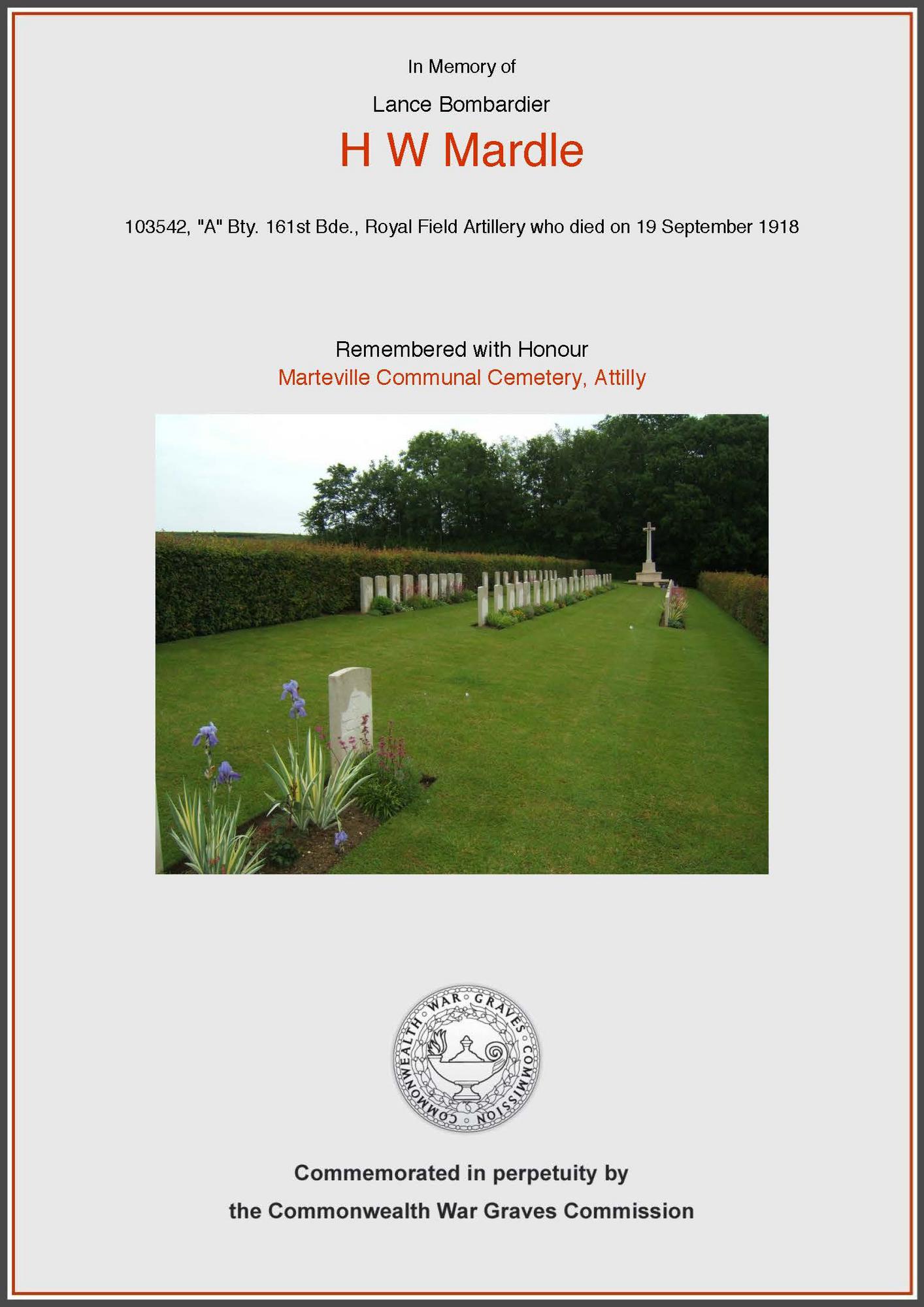 Gunner Herbert W Mardle 103542, Royal Field Artillery