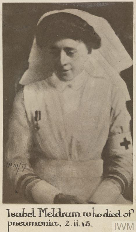 Sister Isabel Meldrum, Territorial Force Nursing Service. Died of pneumonia 02 February 1918.