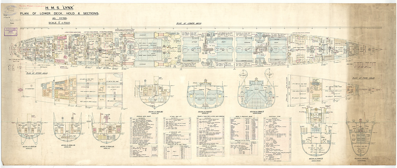 Violet (1835). Scale: 1:48. Plan showing the body plan, sheer lines with inboard detail (and leeboards), and longitudinal half-breadth for Violet (1835), a Tender to HMS Survey Sloop Fairy (1826), as taken off at Sheerness Dockyard by Admiralty Order, 19