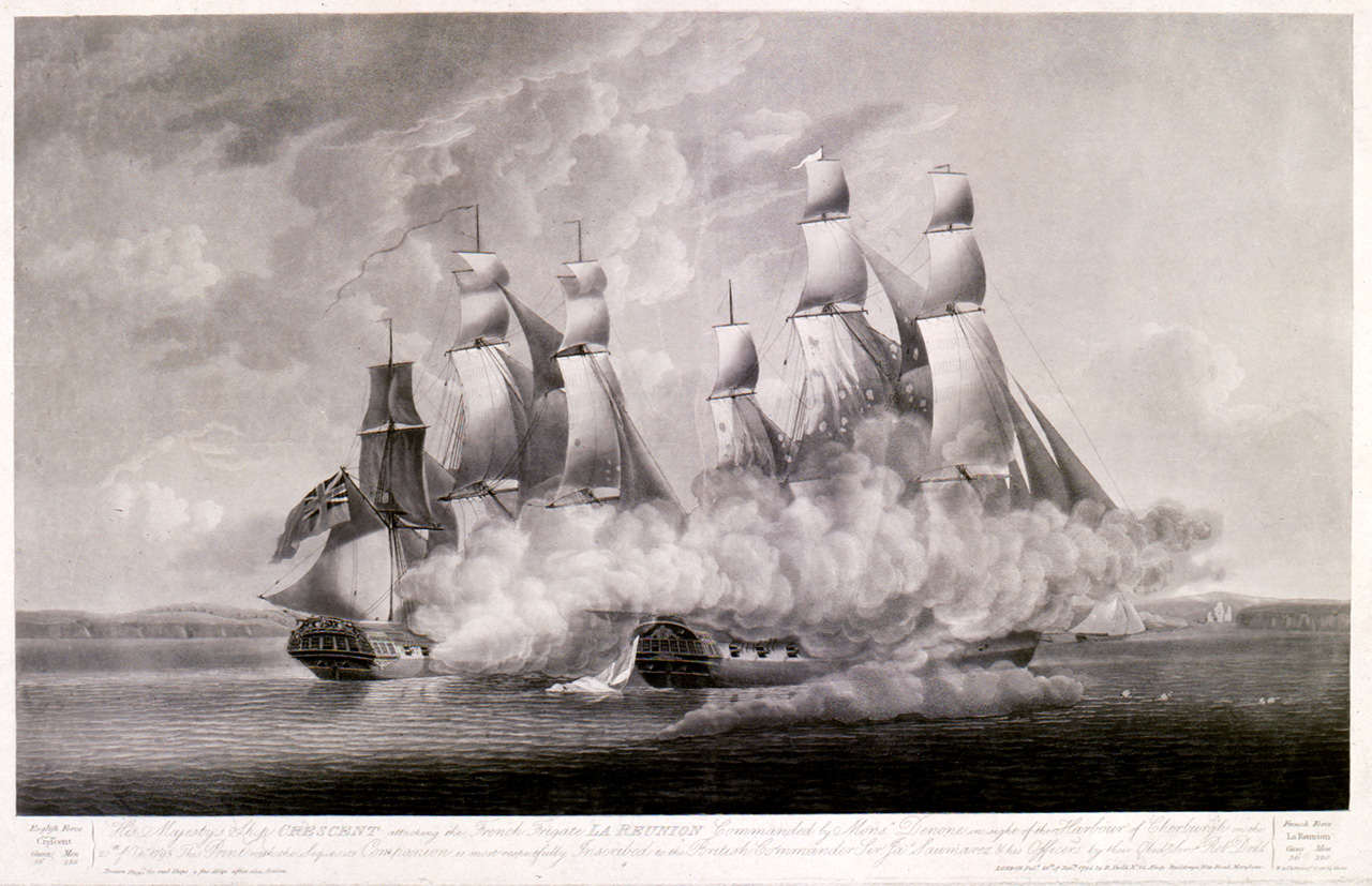 His Majesty's Ship Crescent attacking the French Frigate La Reunion... on the 20th October 1793.... Print