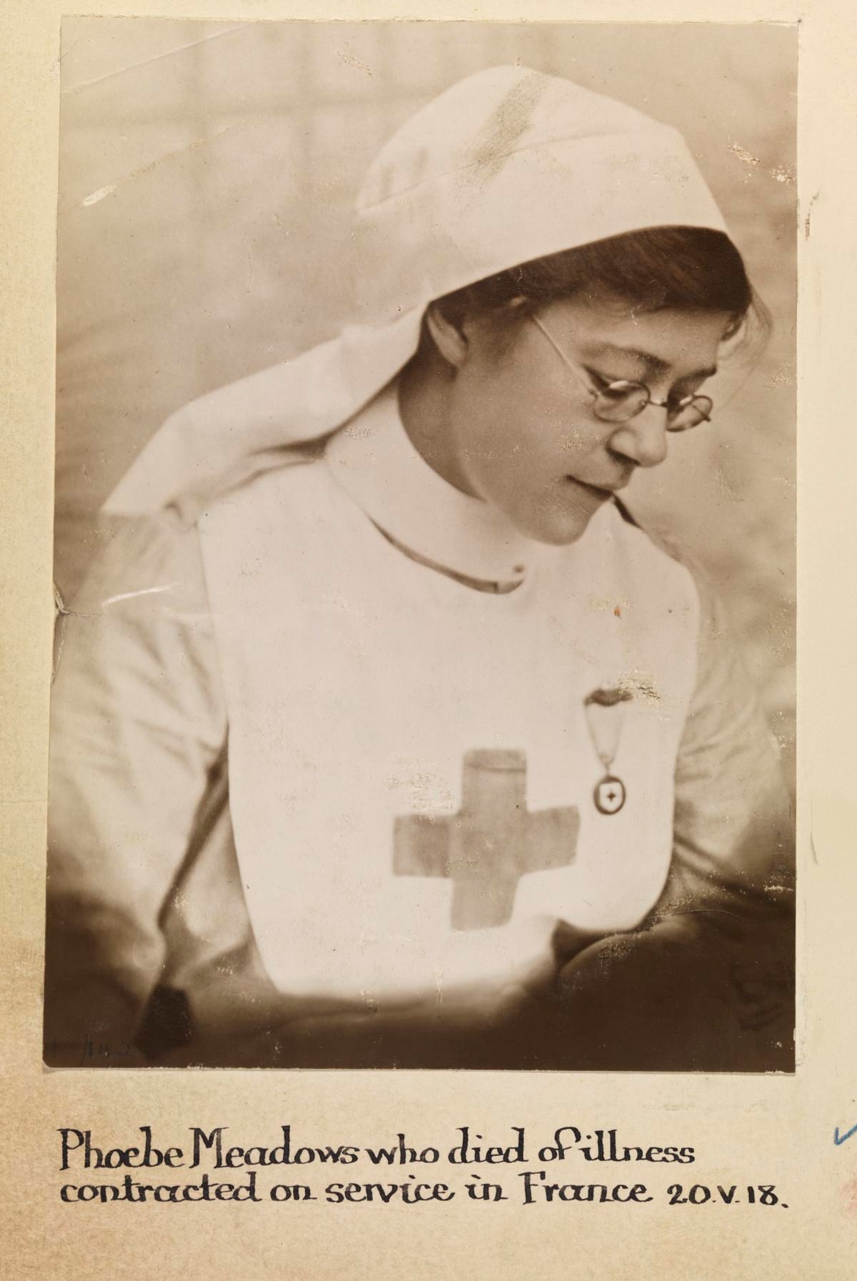 Phoebe E Meadows, Voluntary Aid Detachments. Died of illness contracted on duty in France 20 May 1918.
