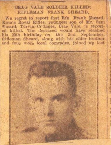 Rifleman Frank Sheard R/19748, King's Royal Rifle Corps