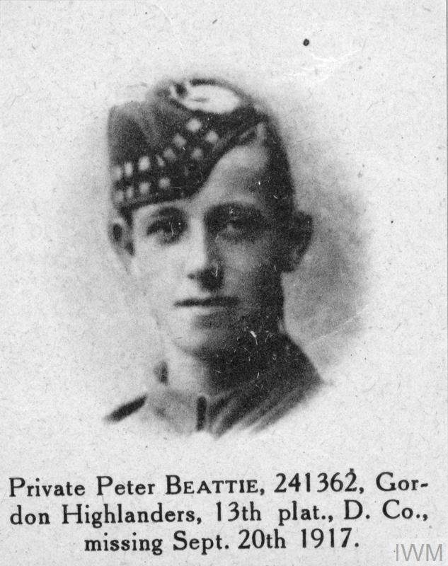 Private Peter Beattie 241362. Unit: 13th Platoon, D Company, 4th Battalion, Gordon Highlanders. Death: 20 September 1917 Western Front