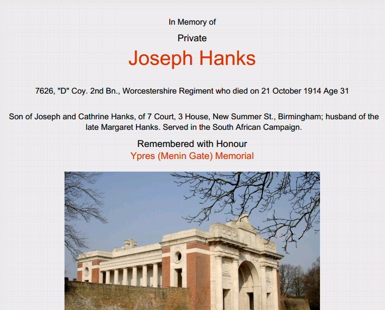Captain George Harvey Hume-Kelly. Unit: 1st Battalion, North Staffordshire Regiment. Death: 21 October 1914 killed in action near Armentieres, Western Front.