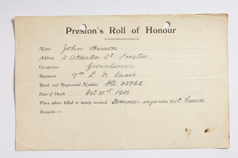Private John Barron 23762, The Loyal North Lancashire Regiment